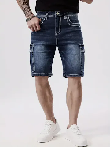 Elastic Denim Shorts, Classic Denim Shorts | Elastic Denim Shorts | Men's Thick Thread Embroidery Classic Multi-pocket.